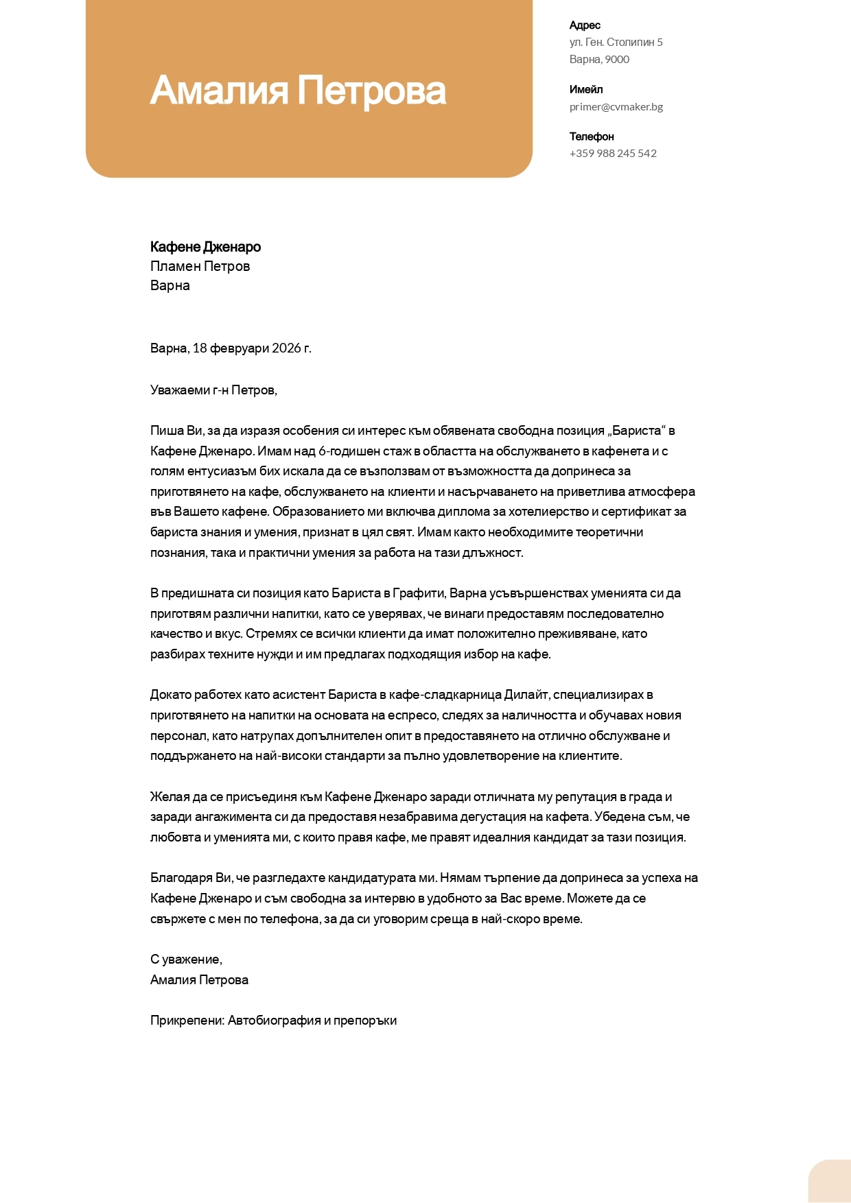 Пример за кратко мотивационно писмо за бариста