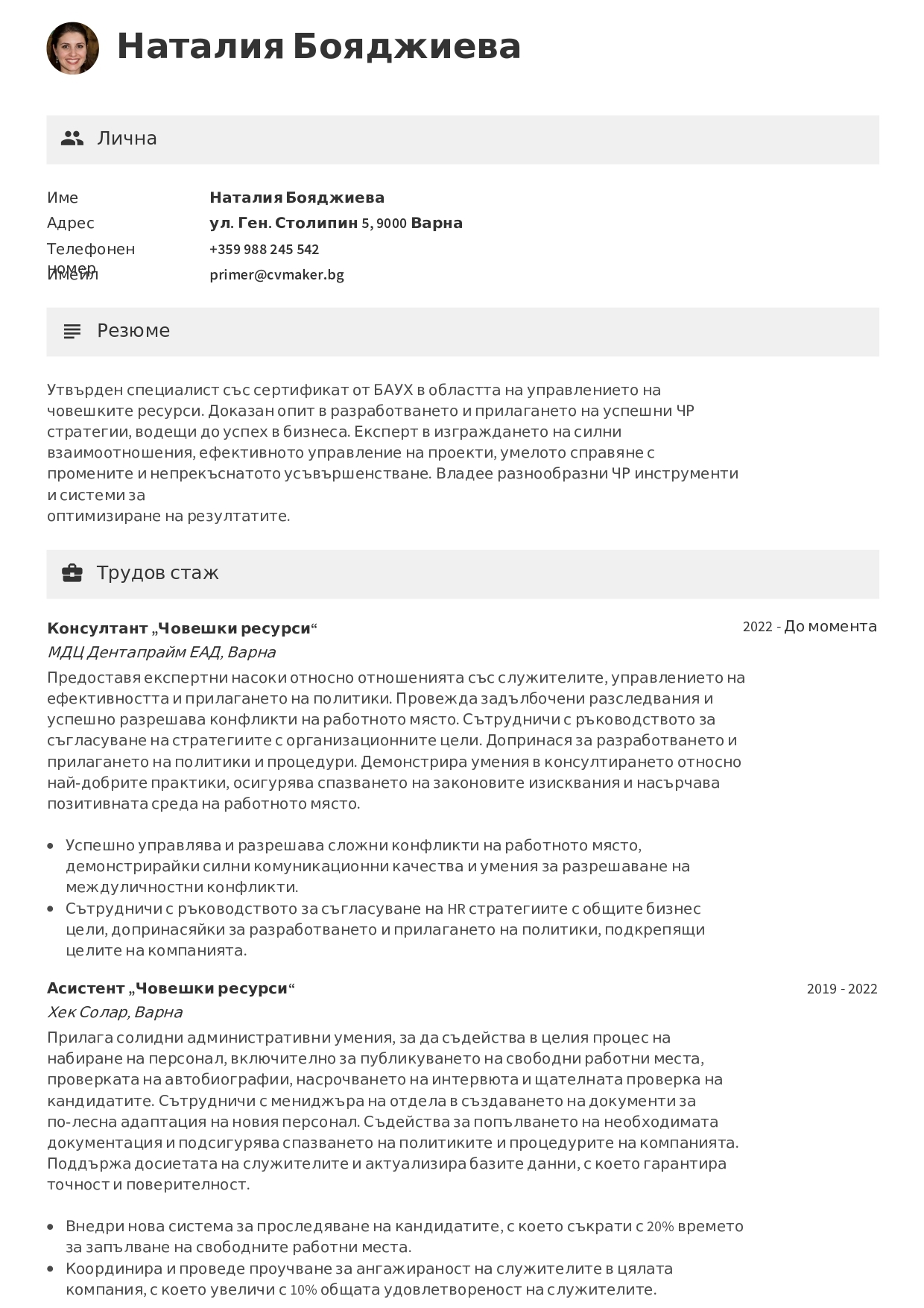 Личен профил в CV-то на специалист „Човешки ресурси“: Примери